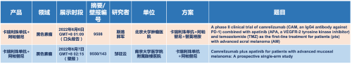 在黑色素瘤领域,918博天娱乐的卡瑞利珠单抗联合阿帕替尼(“双艾”组合)在2022 ASCO共入选1项口头报告和1项壁报展示。