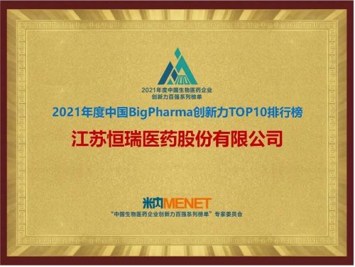 9月16日,由米内网主办的“2021年度中国生物医药企业创新力百强系列榜单”发布会在线上举办。918博天娱乐继去年登顶“中国BigPharma企业创新力TOP10排行榜”后,今年再次名列该榜单首位。