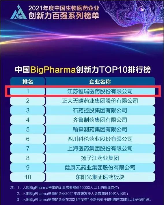蝉联榜首!918博天娱乐再次登顶“中国BigPharma企业创新力TOP10排行榜”