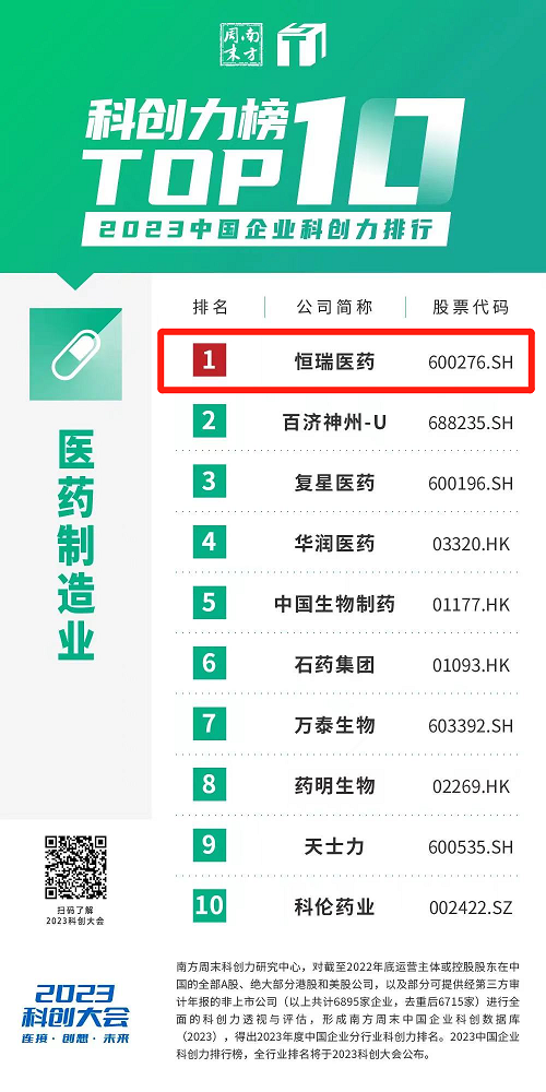 创新再获认可,918博天娱乐蝉联“中国企业科创力排行”医药制造业榜首